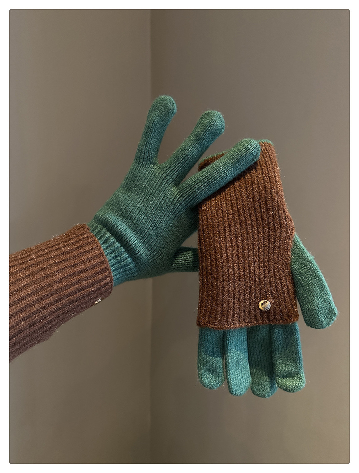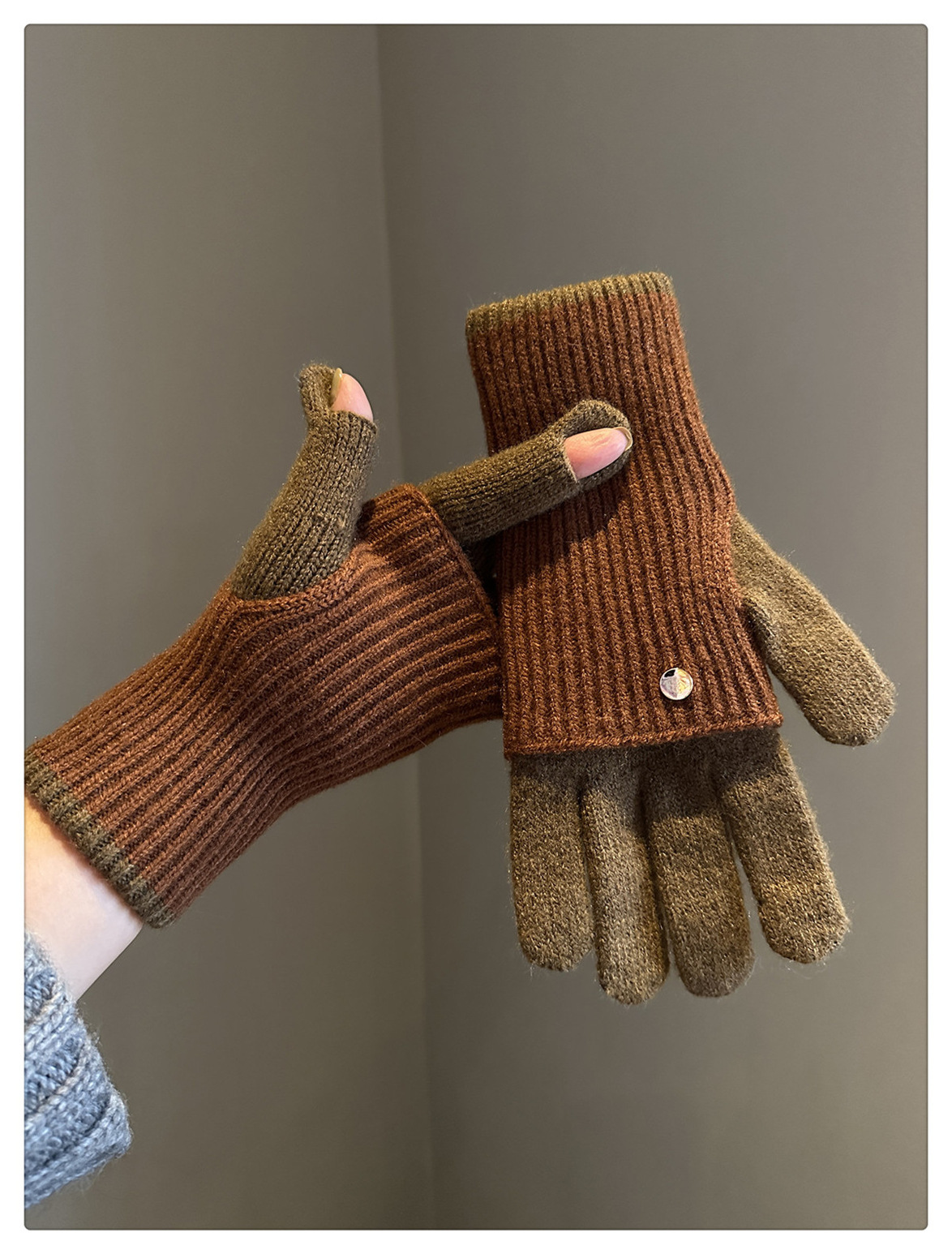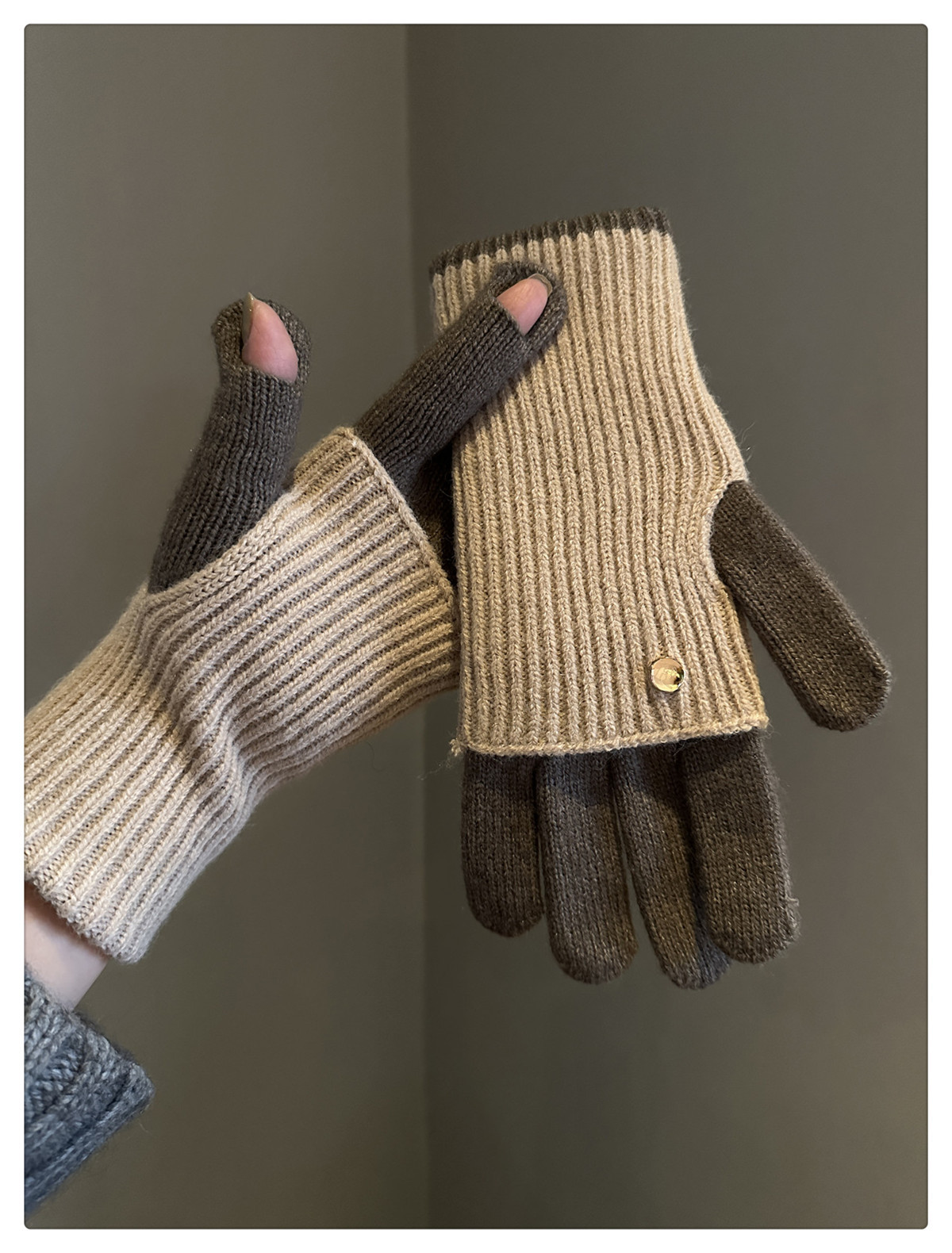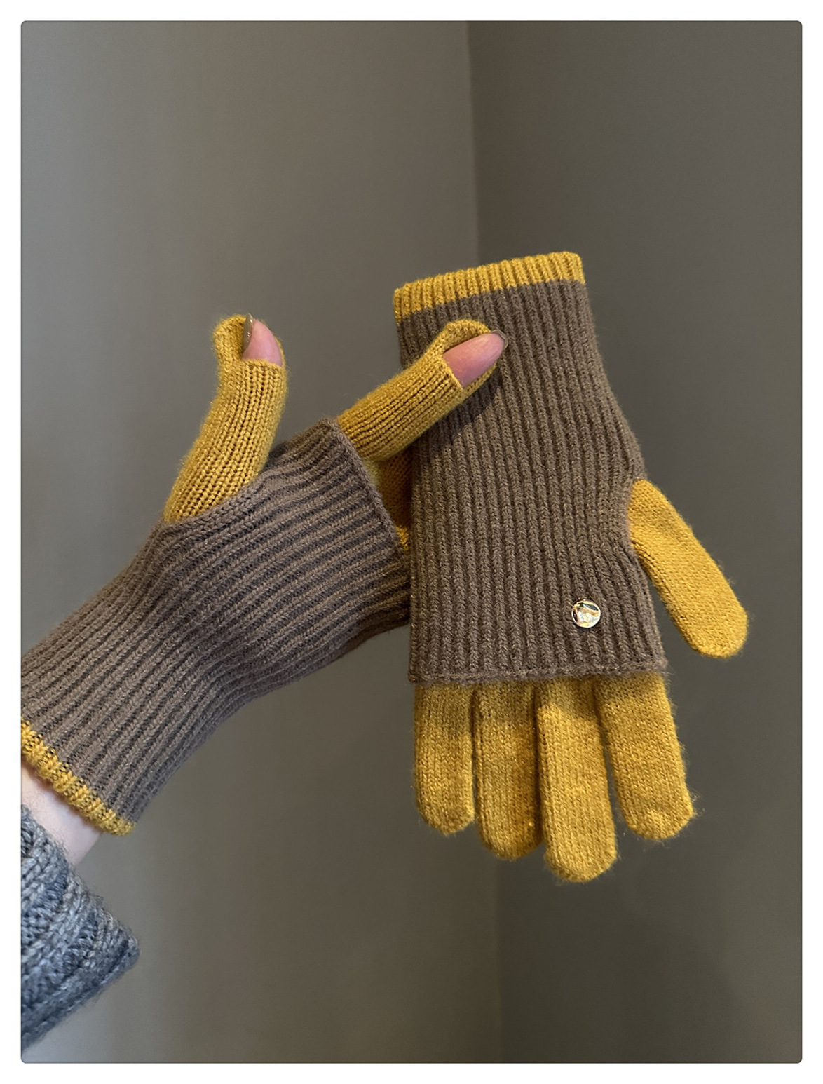 Dual-Use Colorblock Knitted Wool Gloves In The Maillard Style
