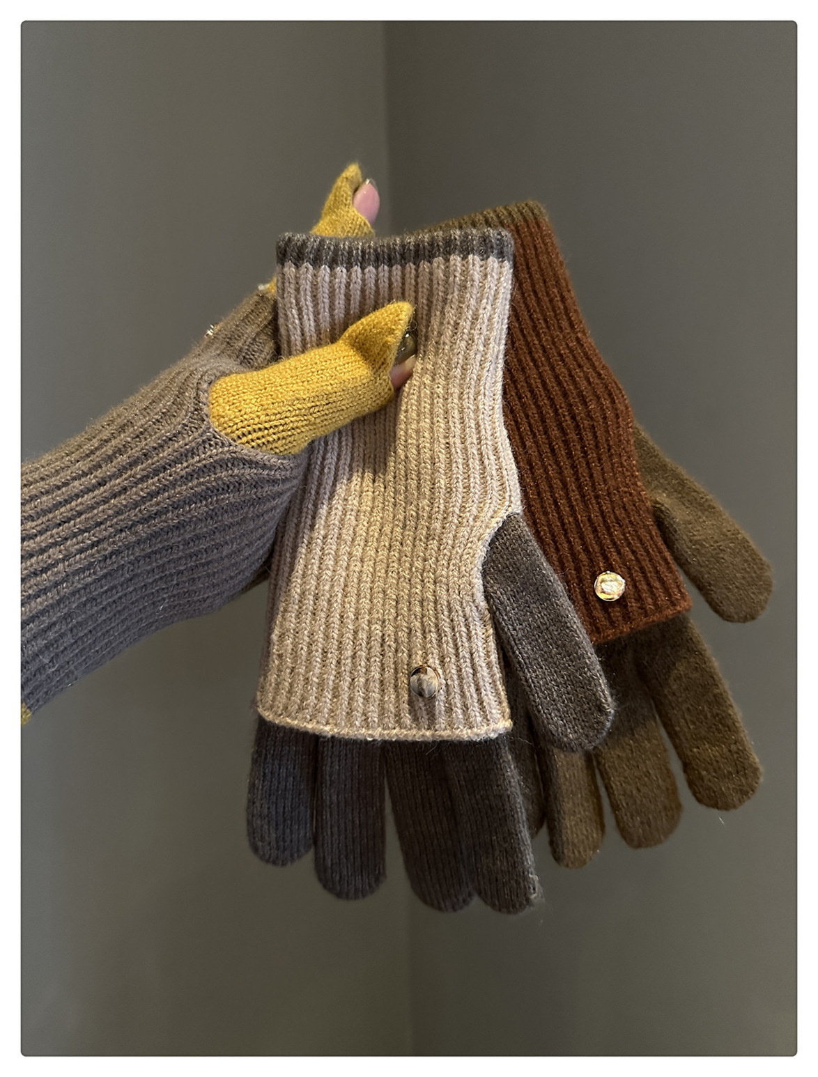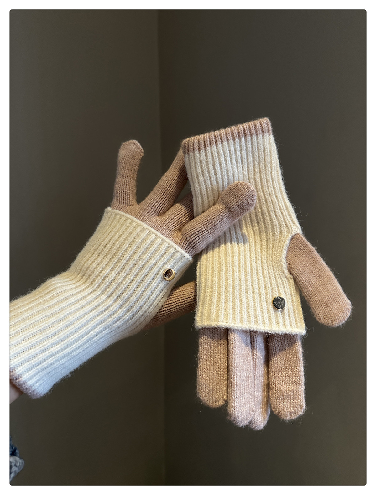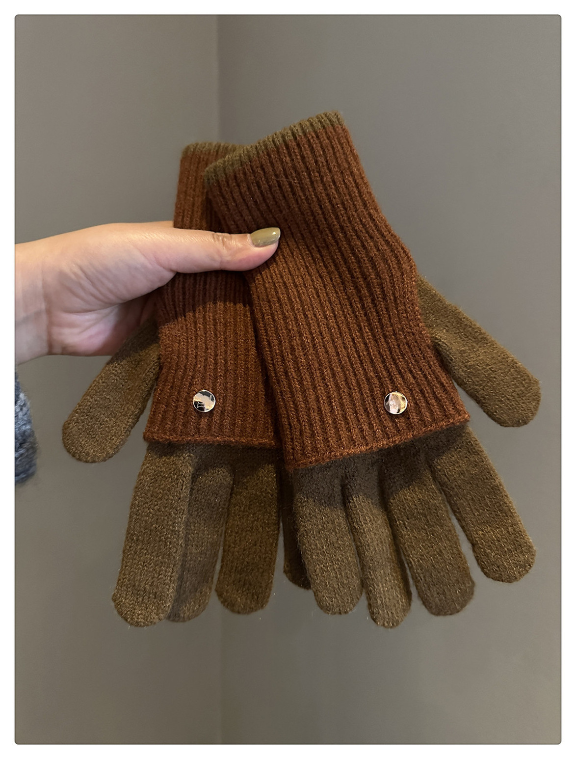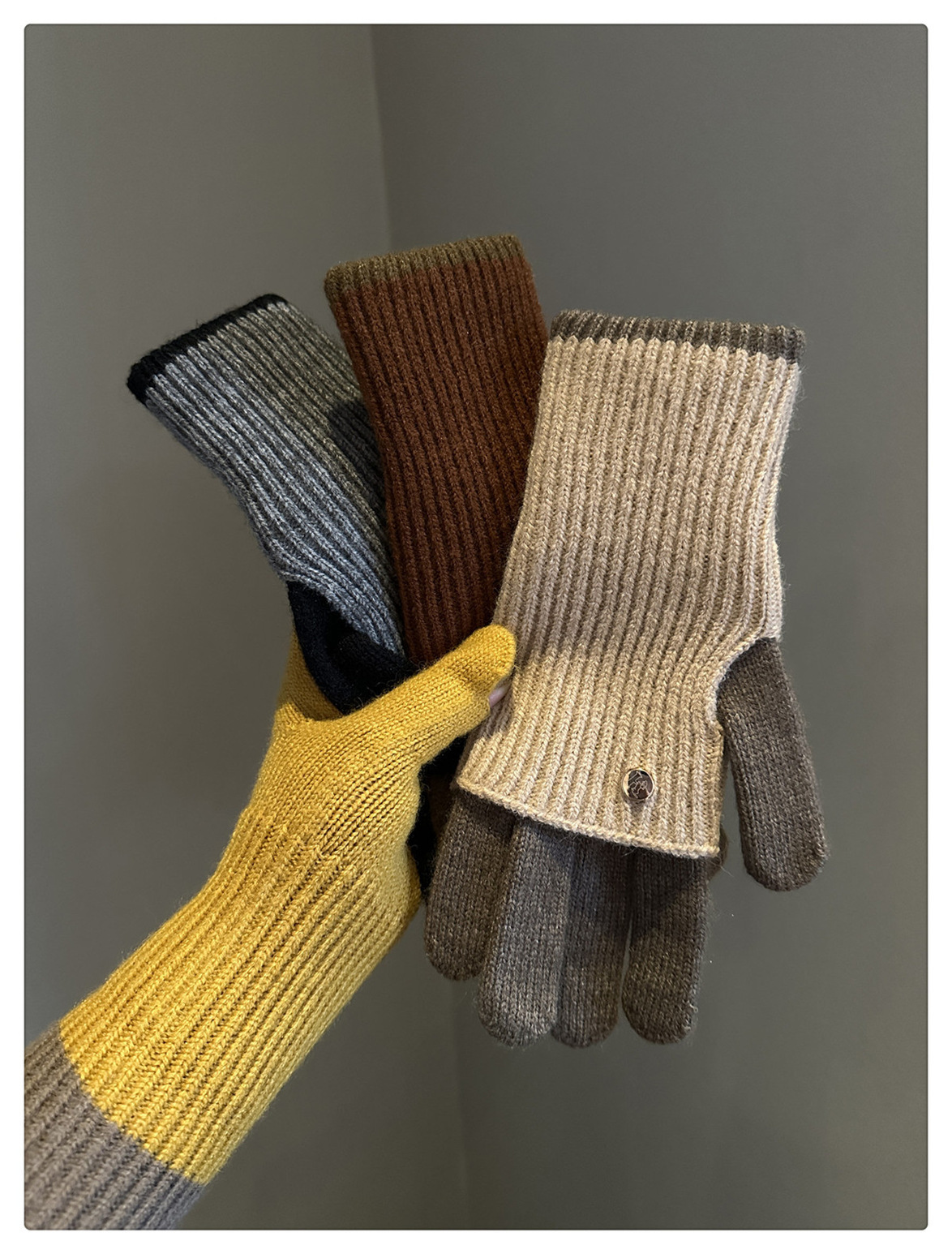 Dual-Use Colorblock Knitted Wool Gloves In The Maillard Style