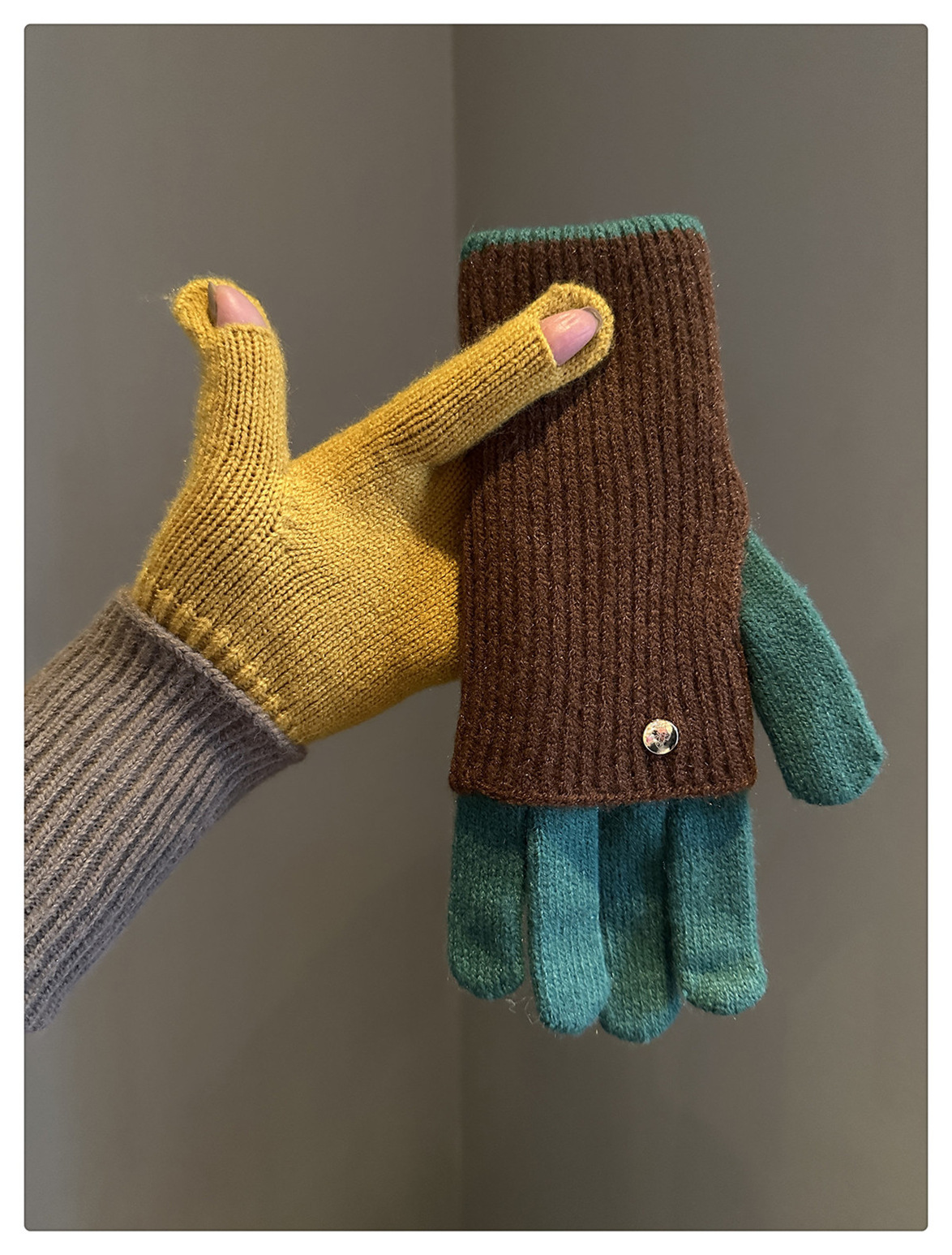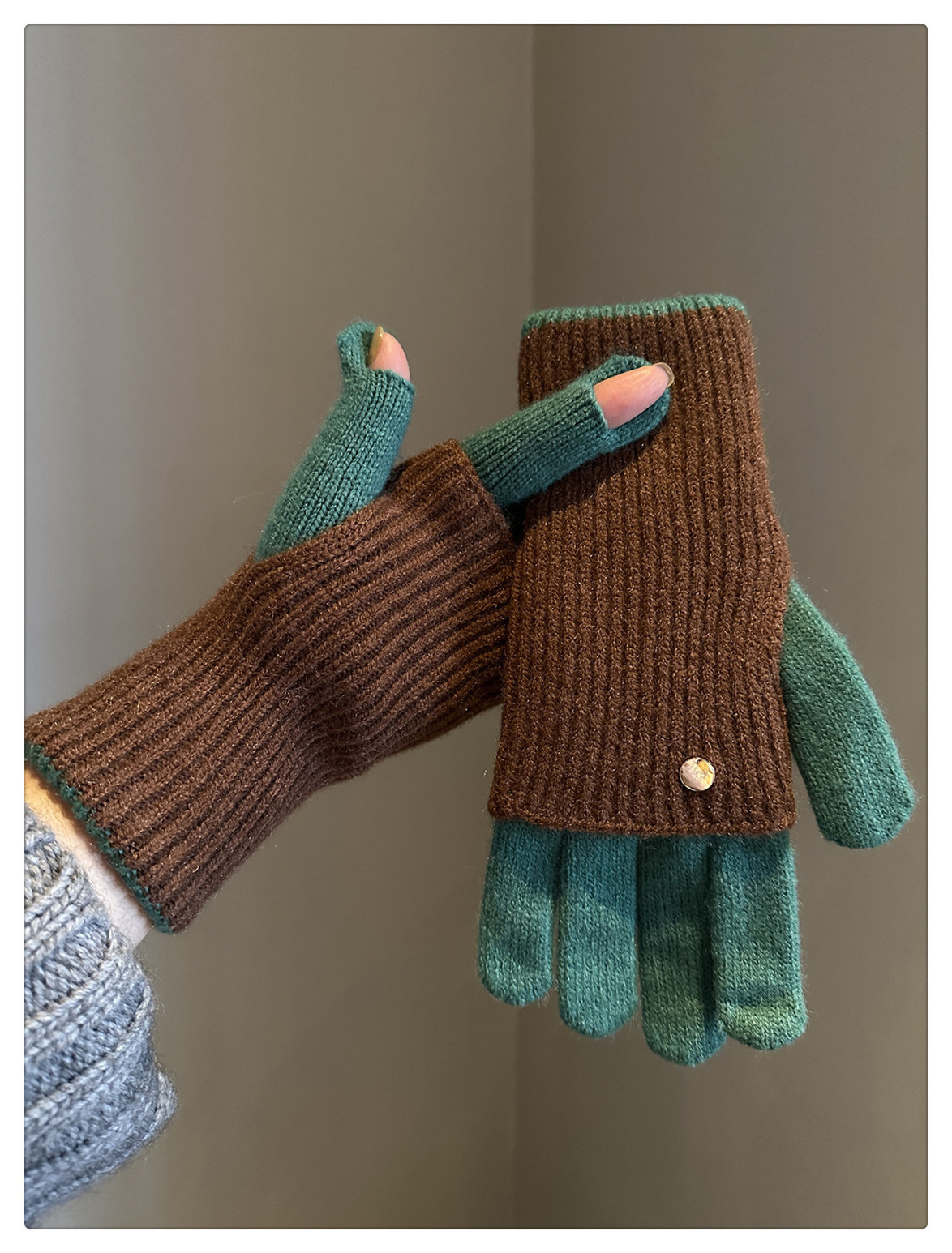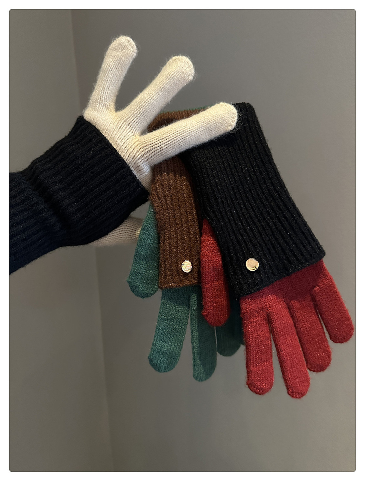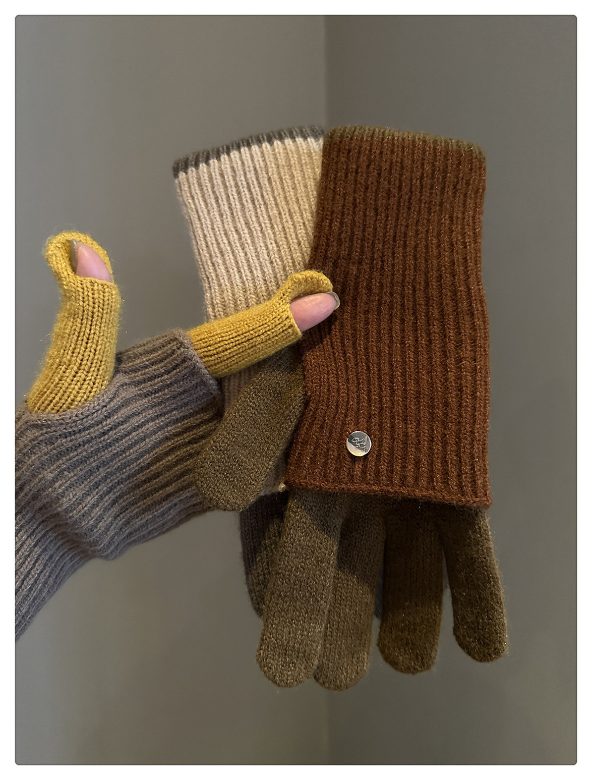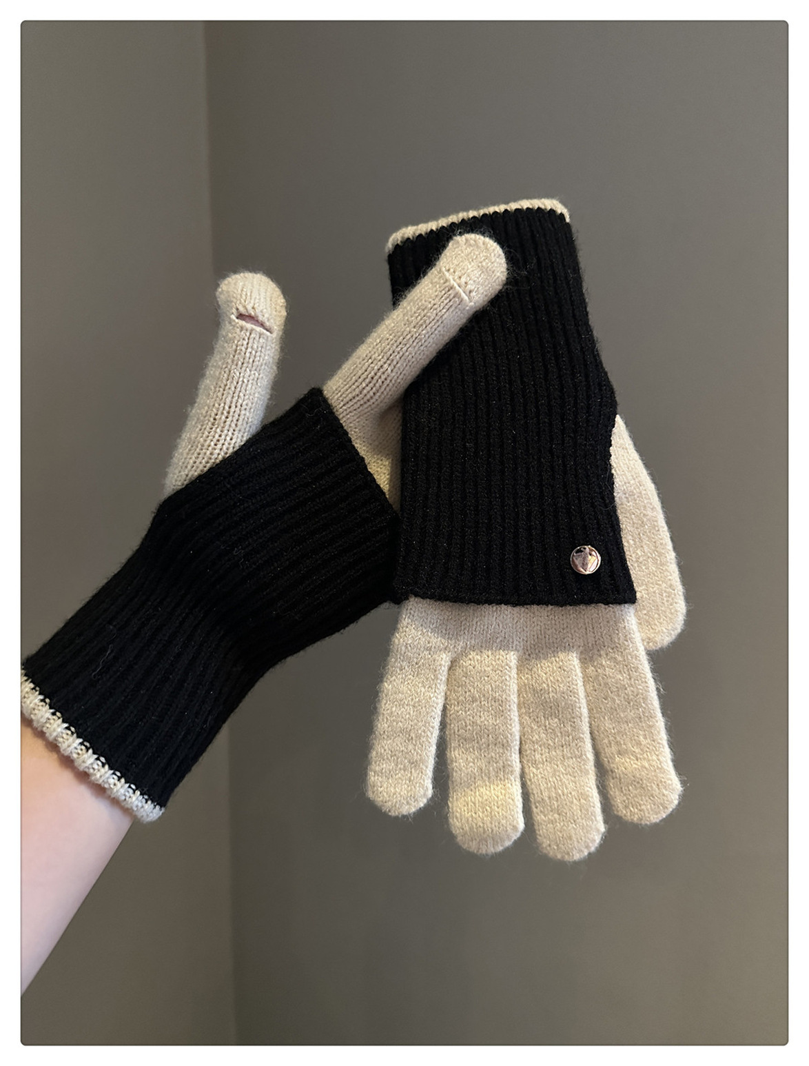 Dual-Use Colorblock Knitted Wool Gloves In The Maillard Style
