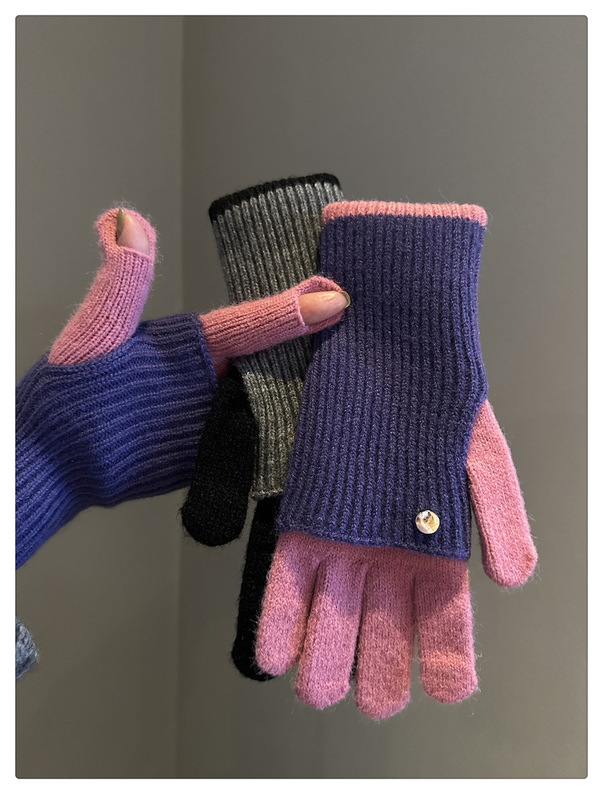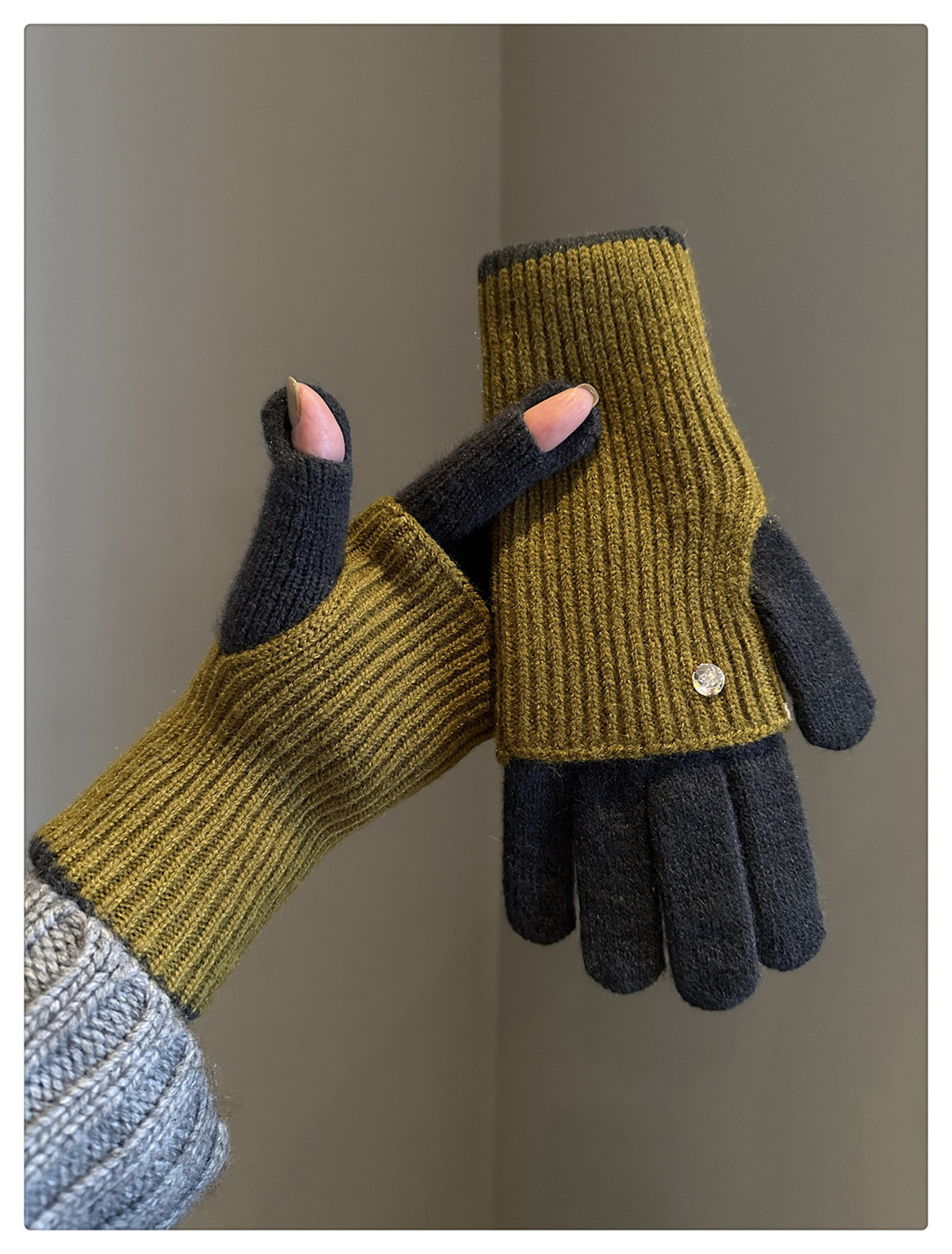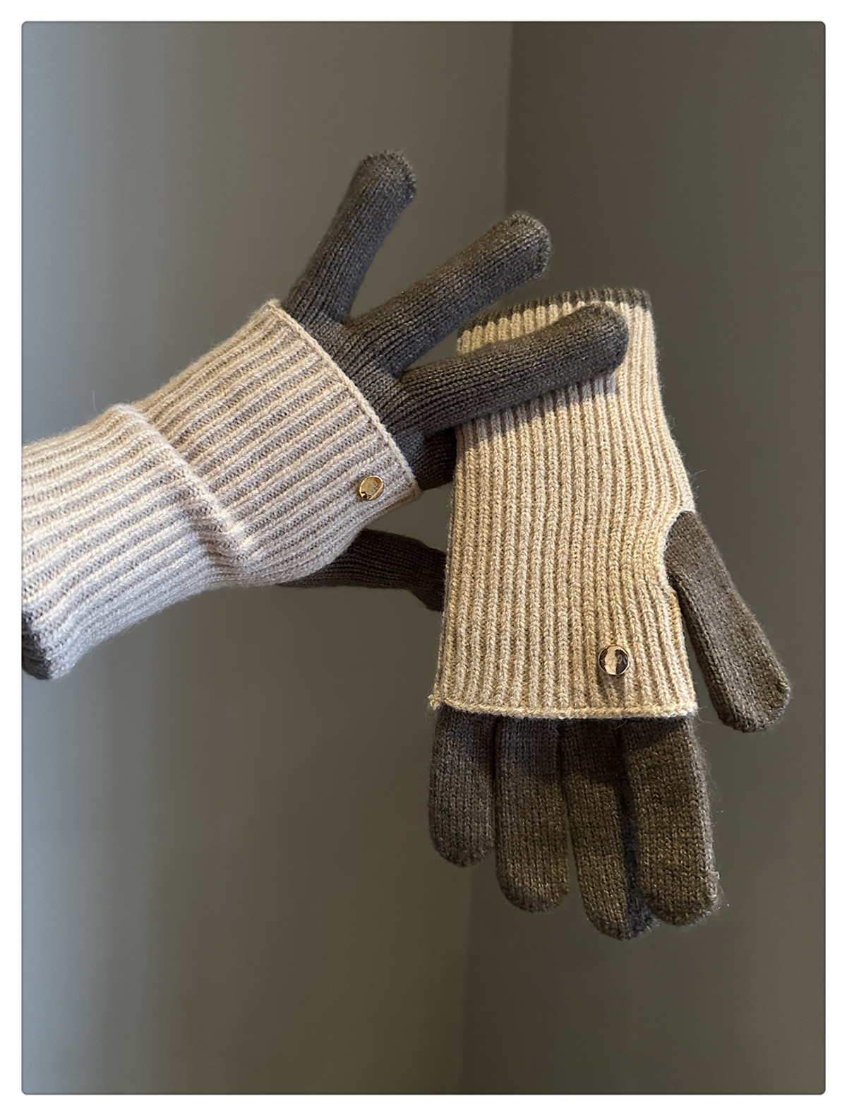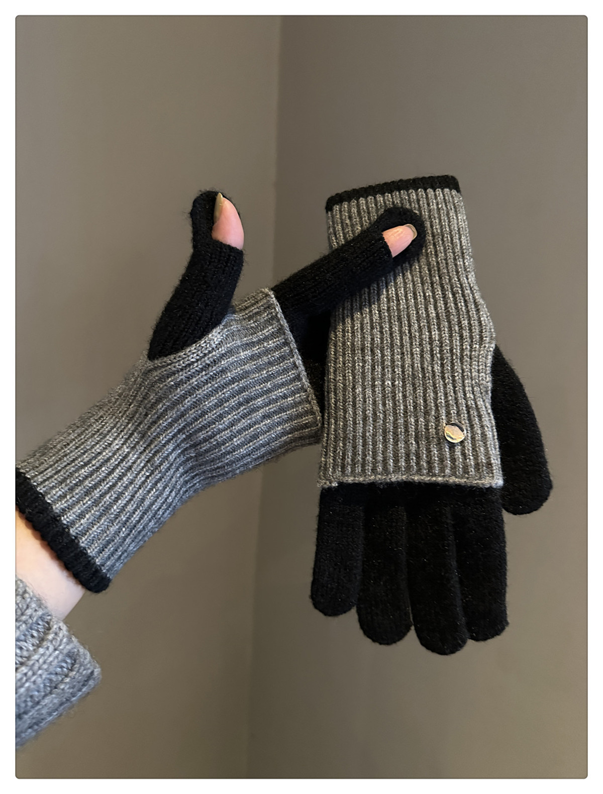 Dual-Use Colorblock Knitted Wool Gloves In The Maillard Style