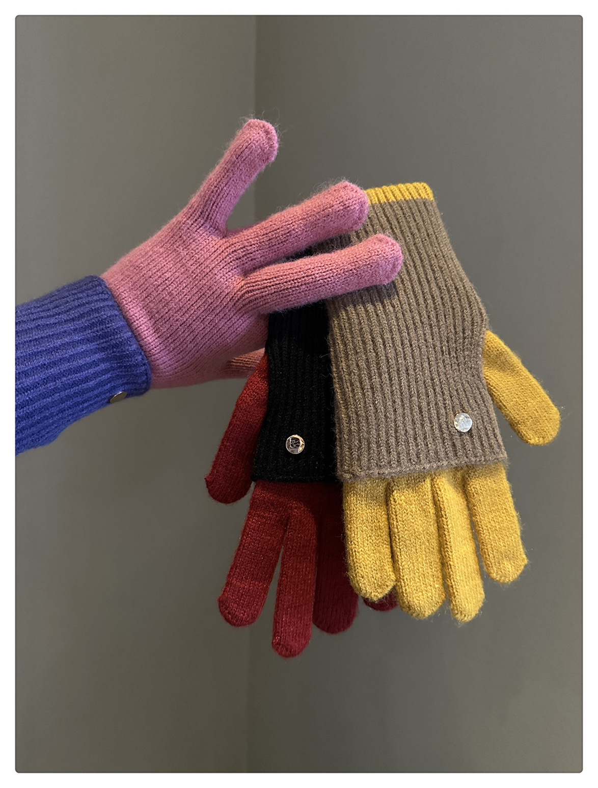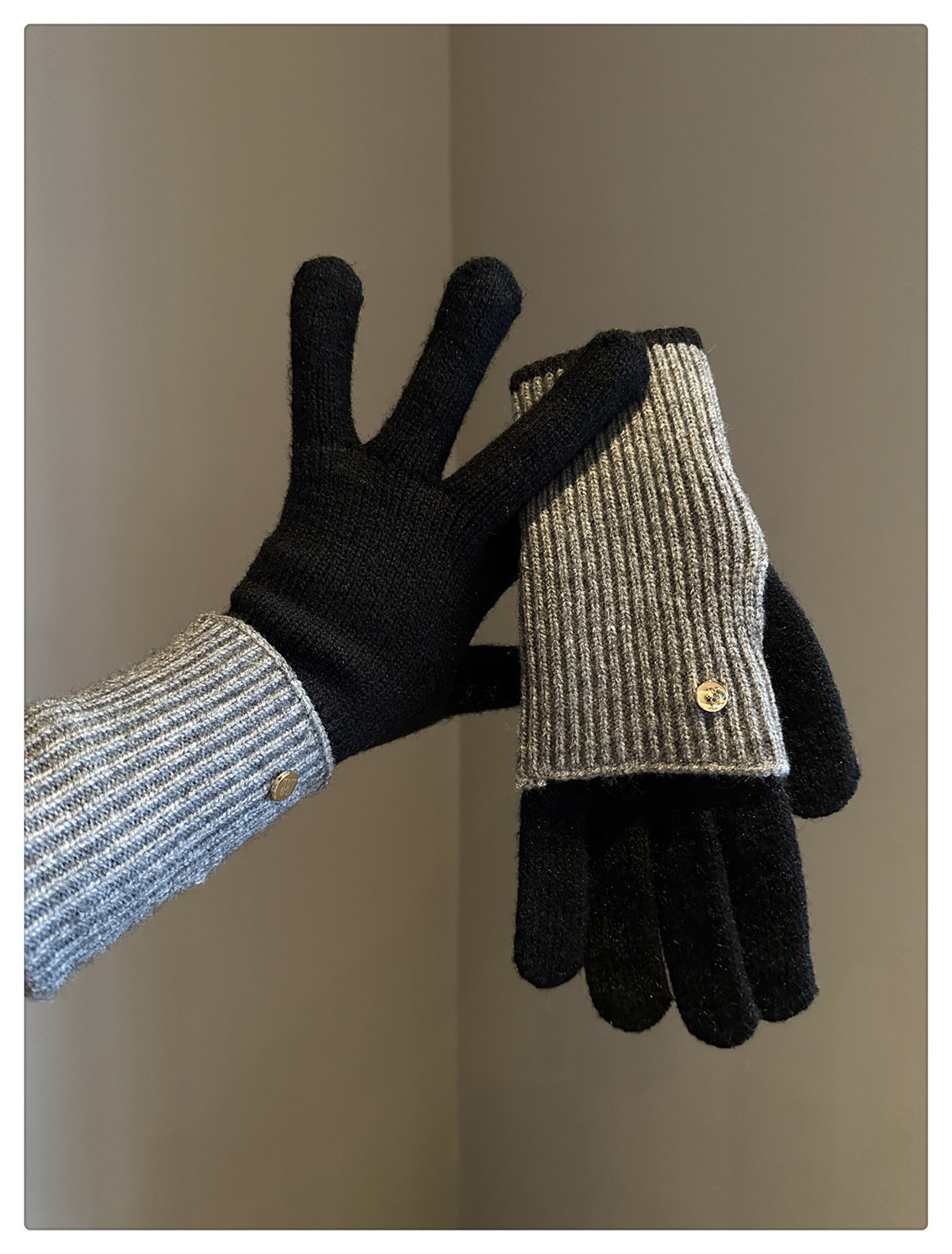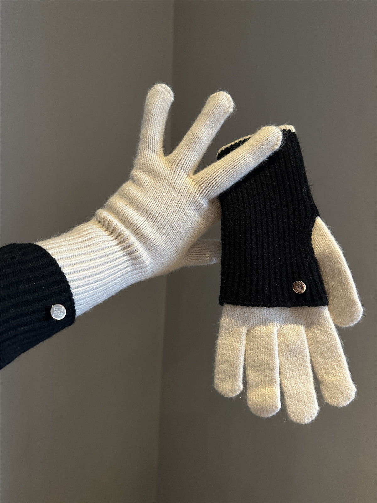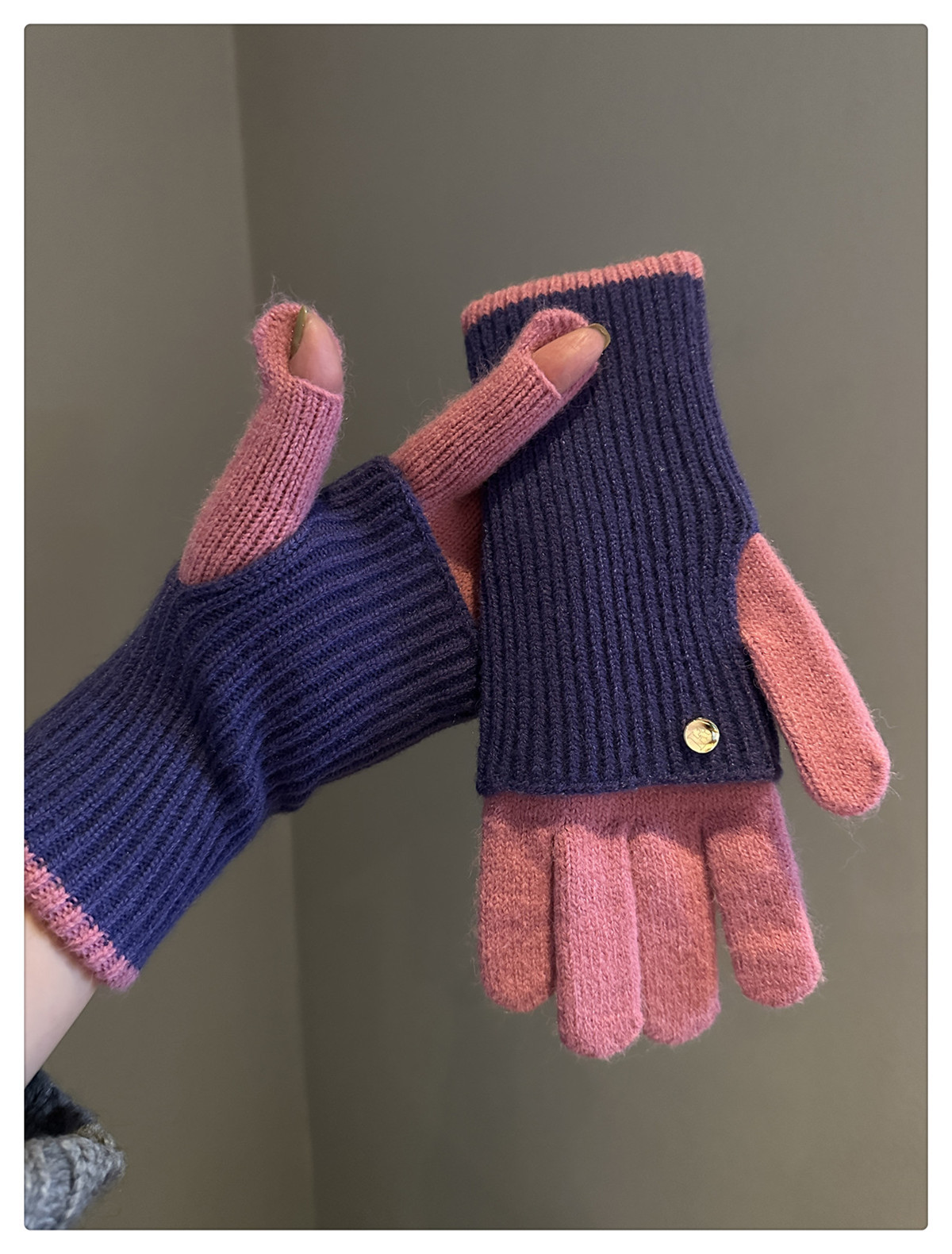 Dual-Use Colorblock Knitted Wool Gloves In The Maillard Style
