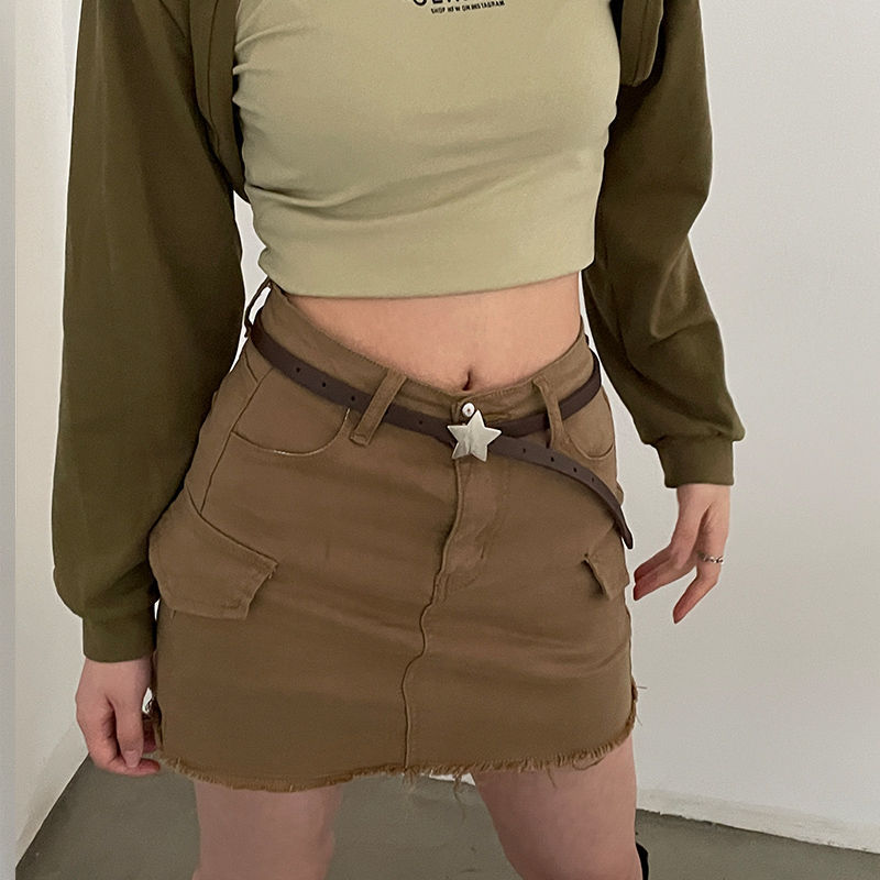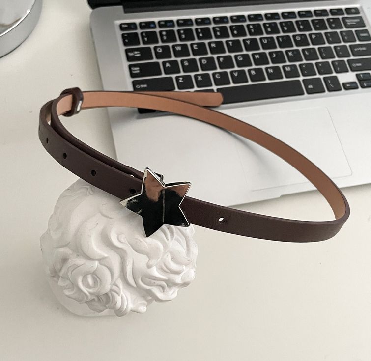 Womens Decorative Small Leather Fashionable Narrow Waist Belt